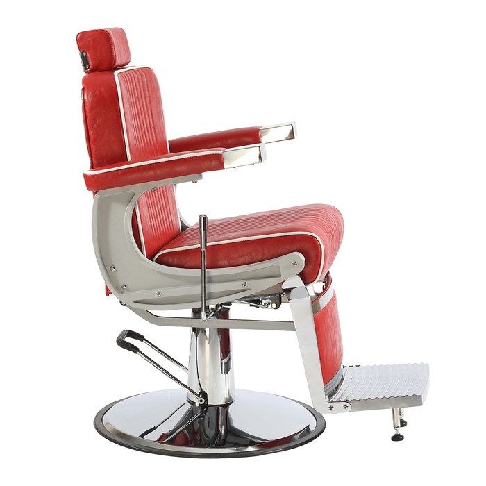 The Gagliano is an eye catching iconic barber chair and is upholstered in top quality red PU vinyl and available in a range of colours. The Gagliano Barber Chair has detailed stitching throughout the backrest and seat and is finished with white outer piping. Some features include a static footrest, powerful lockable hydraulic pump, adjustable and removable headrest.