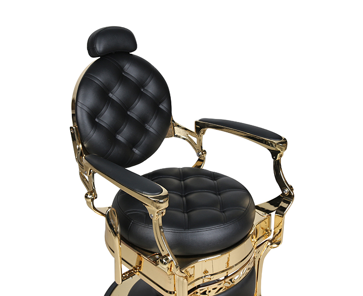 nThis designer barber chair is made from a cast aluminium frame and finished with an electroplated gold colour. Maximum comfort is a given with our use of memory foam for soft cushioning. Our top of the range Johnny Gold has also recently been updated and upholstered in premium quality soft PU vinyl.