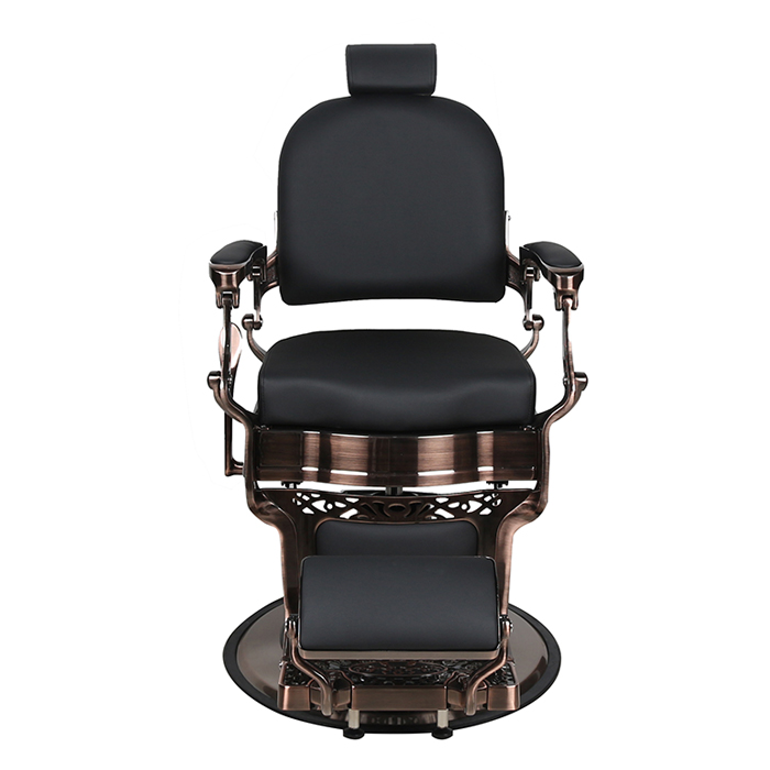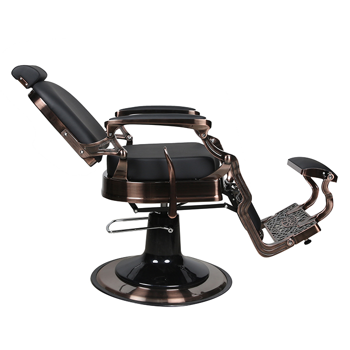 The Imperial Barber Chair returns to a bygone era in the world of barber shops. This vintage-looking barber chair gives off a retro feel with its distressed, antique-like bronze metal accents and metal construction. Besides its ability to recline for the perfect shave, The Imperial barber chair features an adjustable and removable head rest, flip-up foot rest along with a cushioned calf rest.
