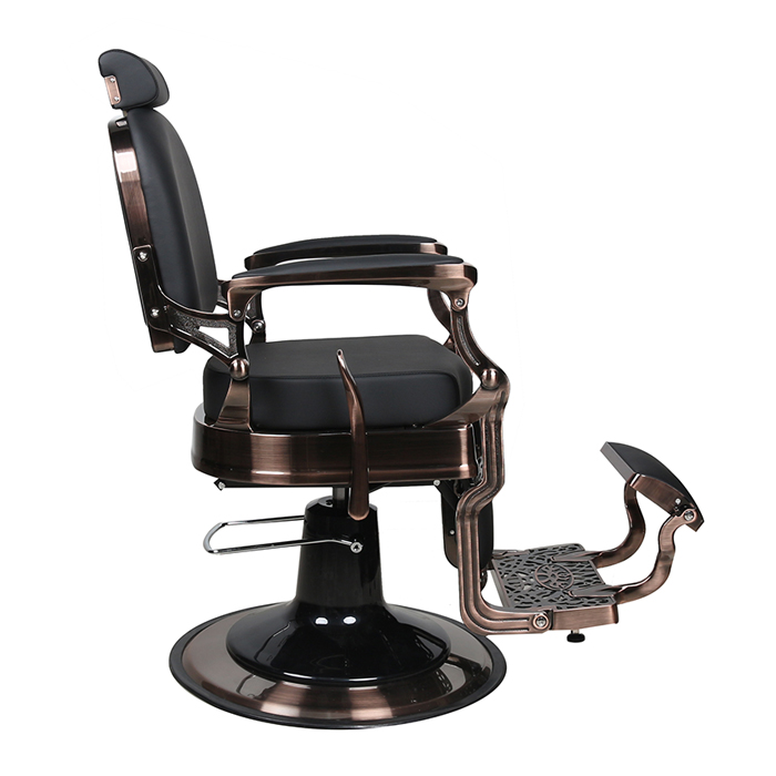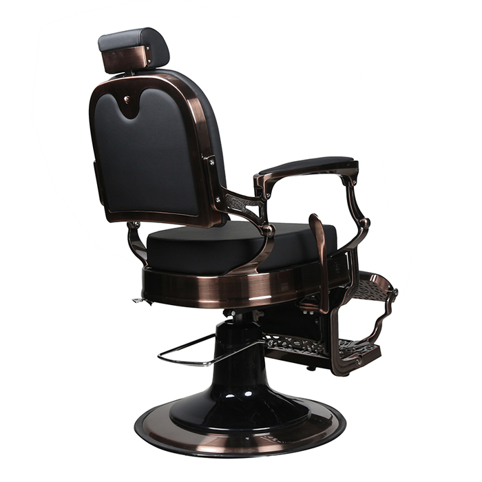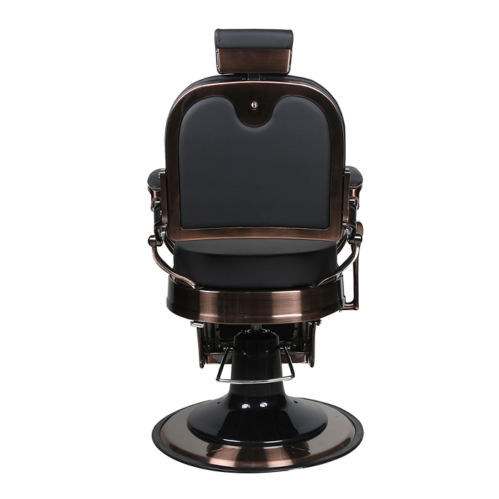 nBuilt to last, the hydraulic pump on this barber chair has a two-year warranty while the round base boasts a matching bronze base with black pump cover. The Imperial barber chair is upholstered in premium quality black PU vinyl but can also be upholstered in multiple colours and fabrics.