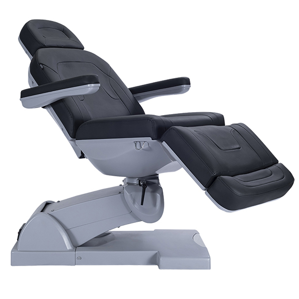 nIntroducing The Wraith 2021 Treatment table which comes fitted with 4 motors and features newly designed medical grade upholstery and compact base. With its extendable foot and head section, your client’s upmost comfort is at the forefront of the modern design of this bed. The height, back and leg sections are all electronically adjustable to meet your client’s individual needs. The 4th motor allows the whole bed to incline (tilt) which is a must for some treatments. Other features include 270 degree rotation (chair can lock in any position), adjustable/removable armrests and comes standard with a smart active foot control.