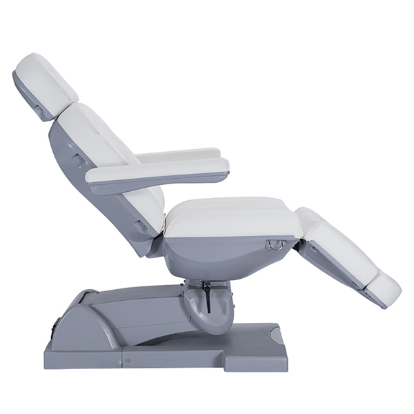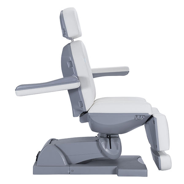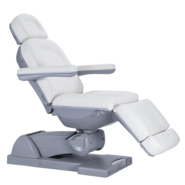 nIntroducing The Wraith 2021 Treatment table which comes fitted with 4 motors and features newly designed medical grade upholstery and compact base. With its extendable foot and head section, your client’s upmost comfort is at the forefront of the modern design of this bed. The height, back and leg sections are all electronically adjustable to meet your client’s individual needs. The 4th motor allows the whole bed to incline (tilt) which is a must for some treatments. Other features include 270 degree rotation (chair can lock in any position), adjustable/removable armrests and comes standard with a smart active foot control.
