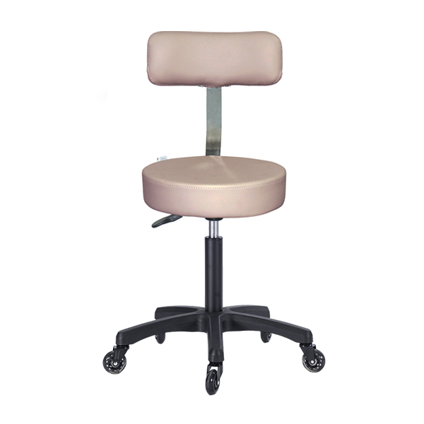 The Ultima Medi Deluxe Stool in latte with back support features a padded seat upholstered with premium medical grade vinyl and fire proof foam. It has gas lift height adjustment and a curved backrest to ensure support and to help maintain correct posture whilst sitting for long periods of time. It also features a black nylon five star base and fitted with 65mm hair-free roller castors for easy movement. Ideal for any profession that requires a strong durable stool.